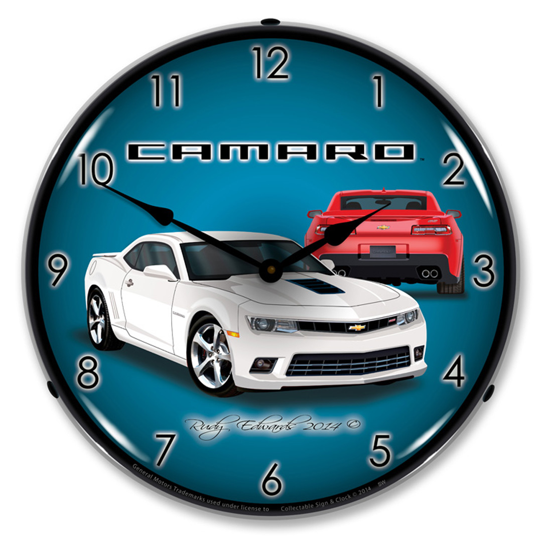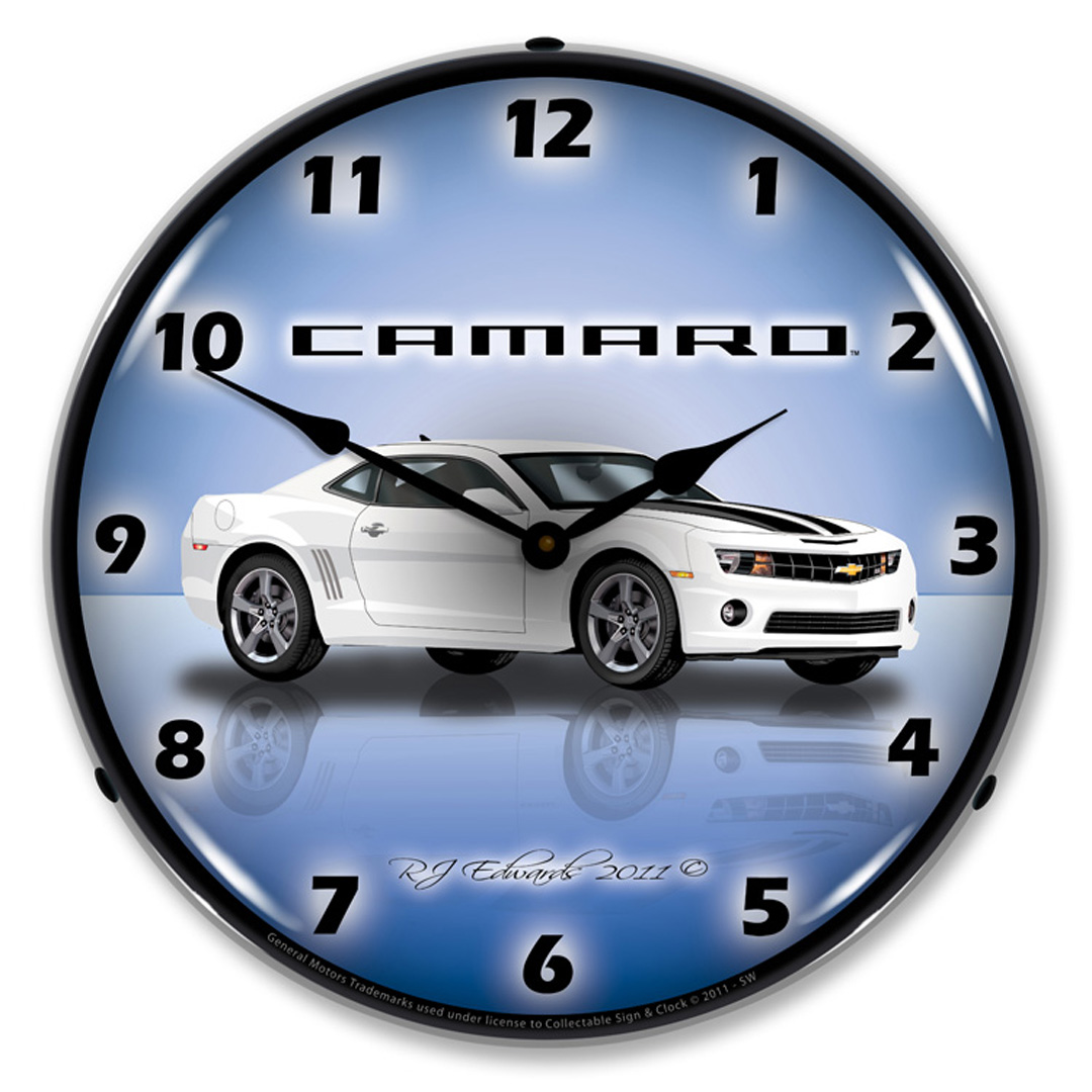 Add modern muscle to your space with 5th Gen Camaro LED backlit clocks. Featuring 2010–2015 SS & ZL1 styles. Perfect for garages, offices & collectors.