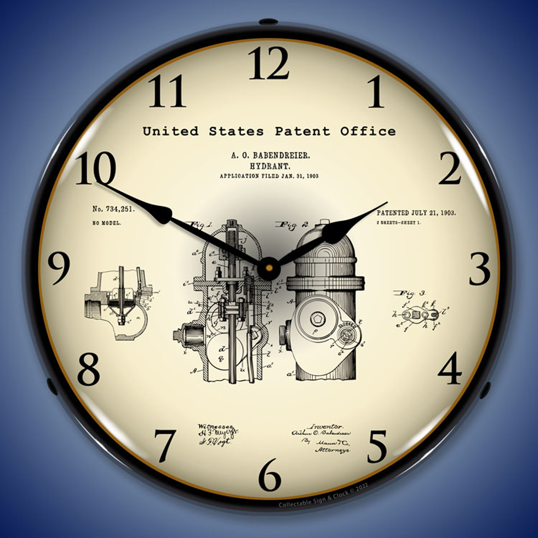 1903 Fire Hydrant Patent LED Wall Clock Illuminated not Neon