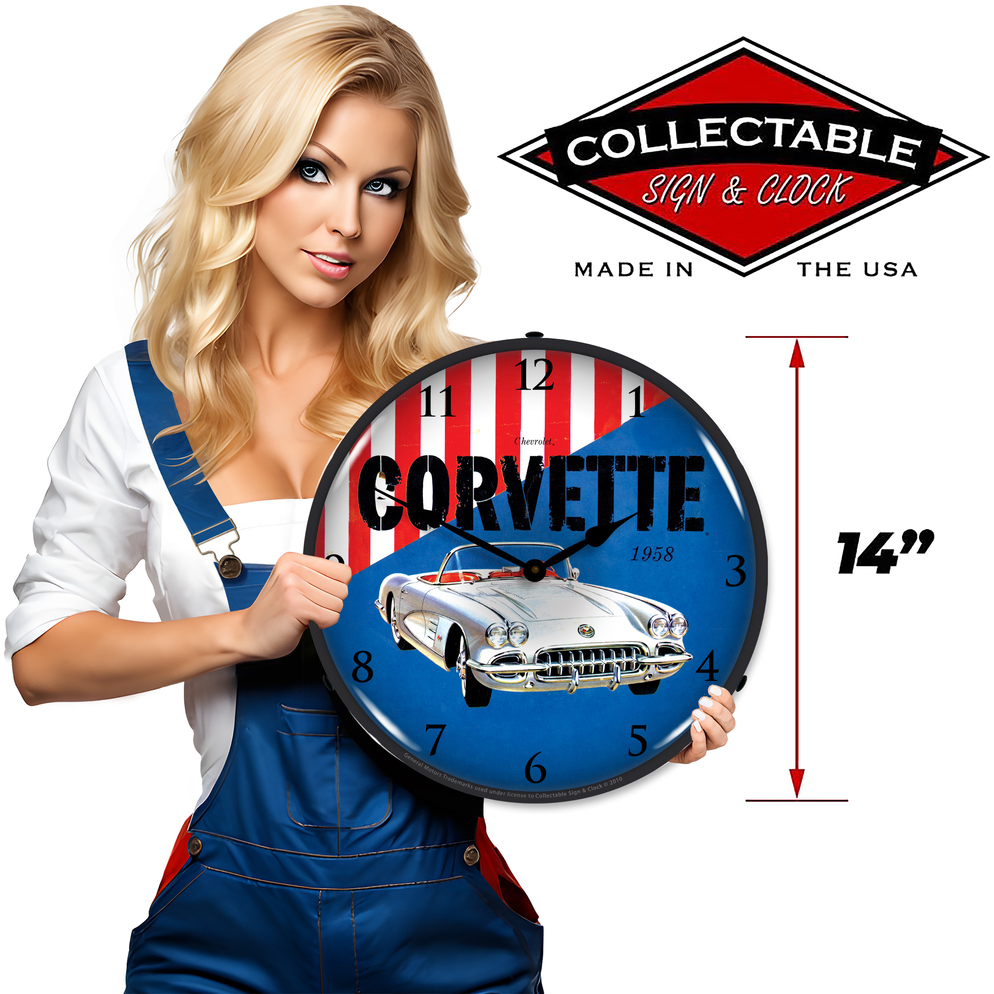 1958 Corvette LED Wall Clock Illuminated not Neon