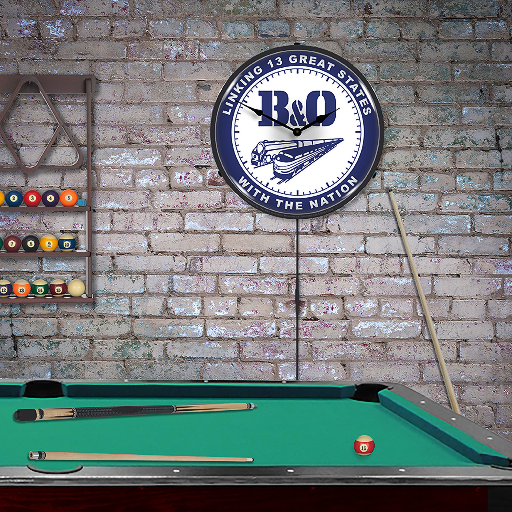 B&O Railroad 13 States LED Wall Clock Illuminated not Neon