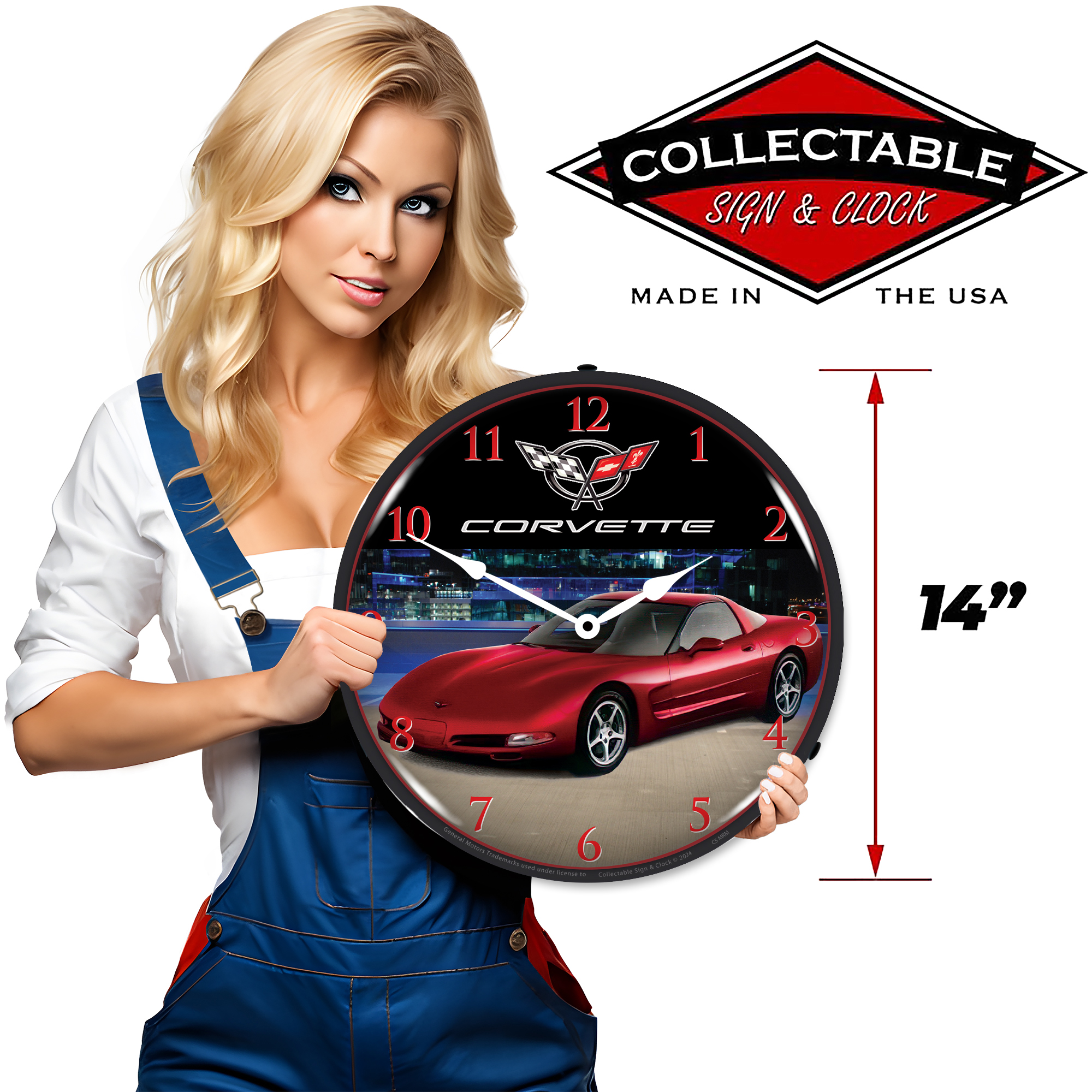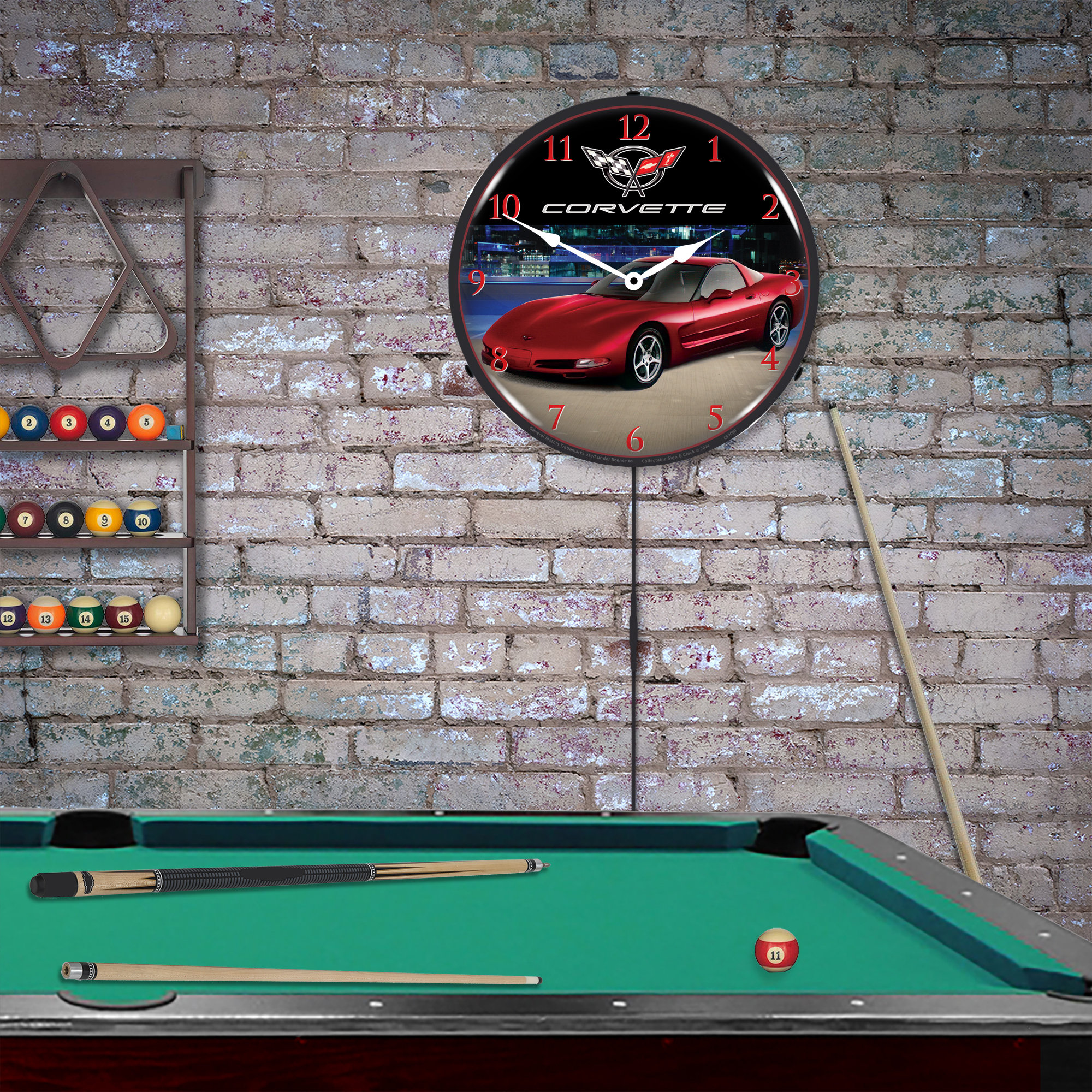 C5 Corvette Magnetic Red Metallic LED Wall Clock Illuminated not Neon