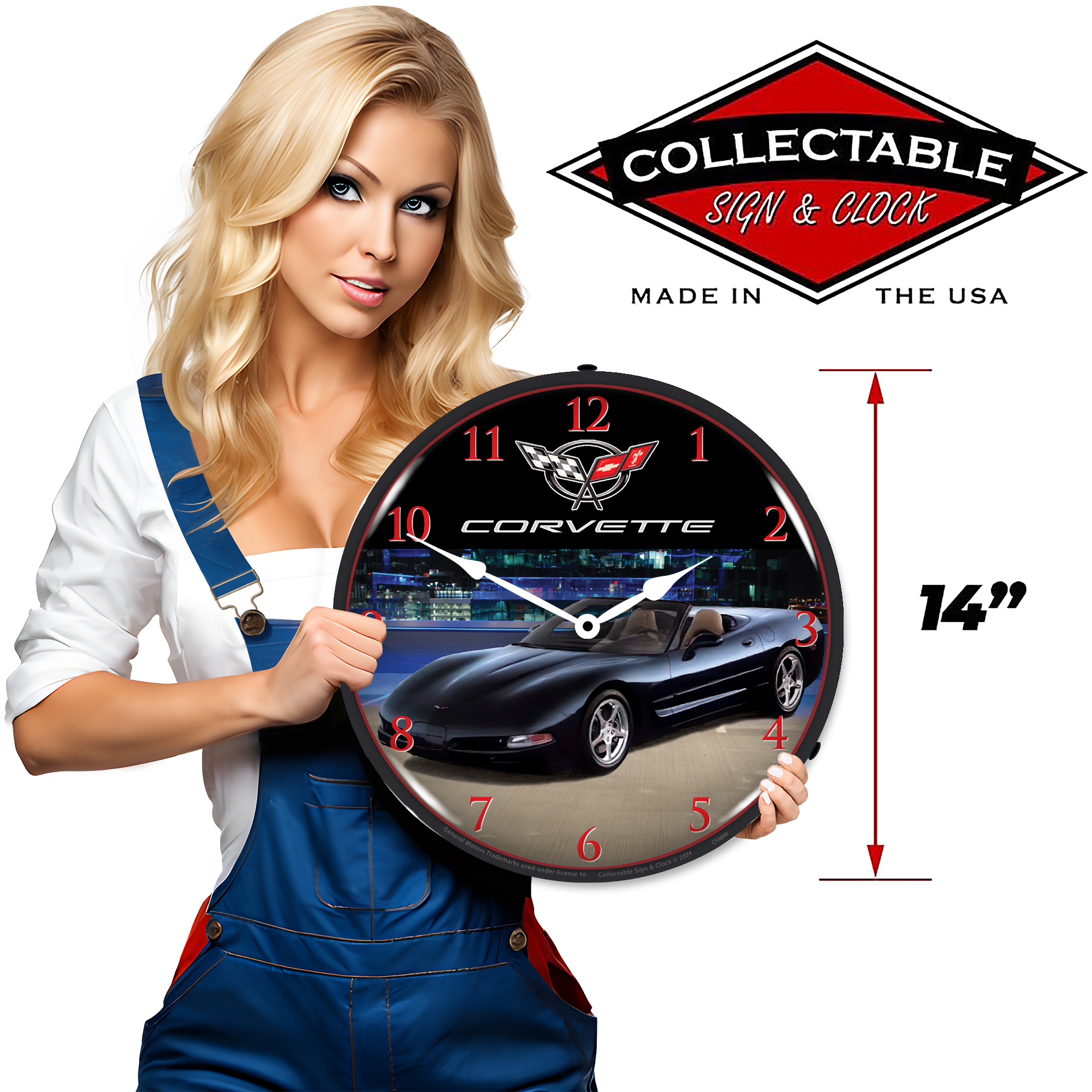 C5 Corvette Navy Blue Metallic LED Wall Clock Illuminated not Neon