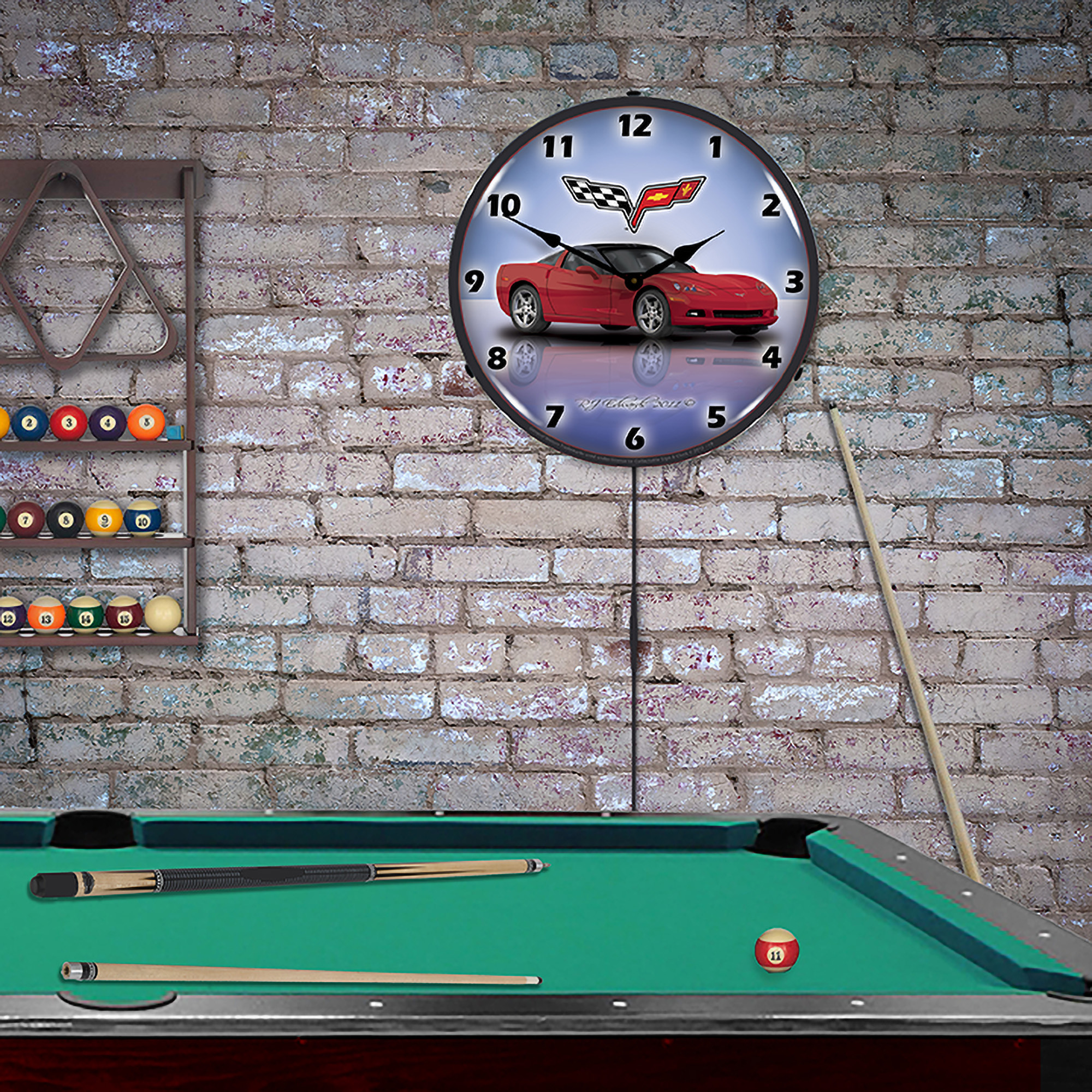 C6 Corvette Crystal Red LED Wall Clock Illuminated not Neon