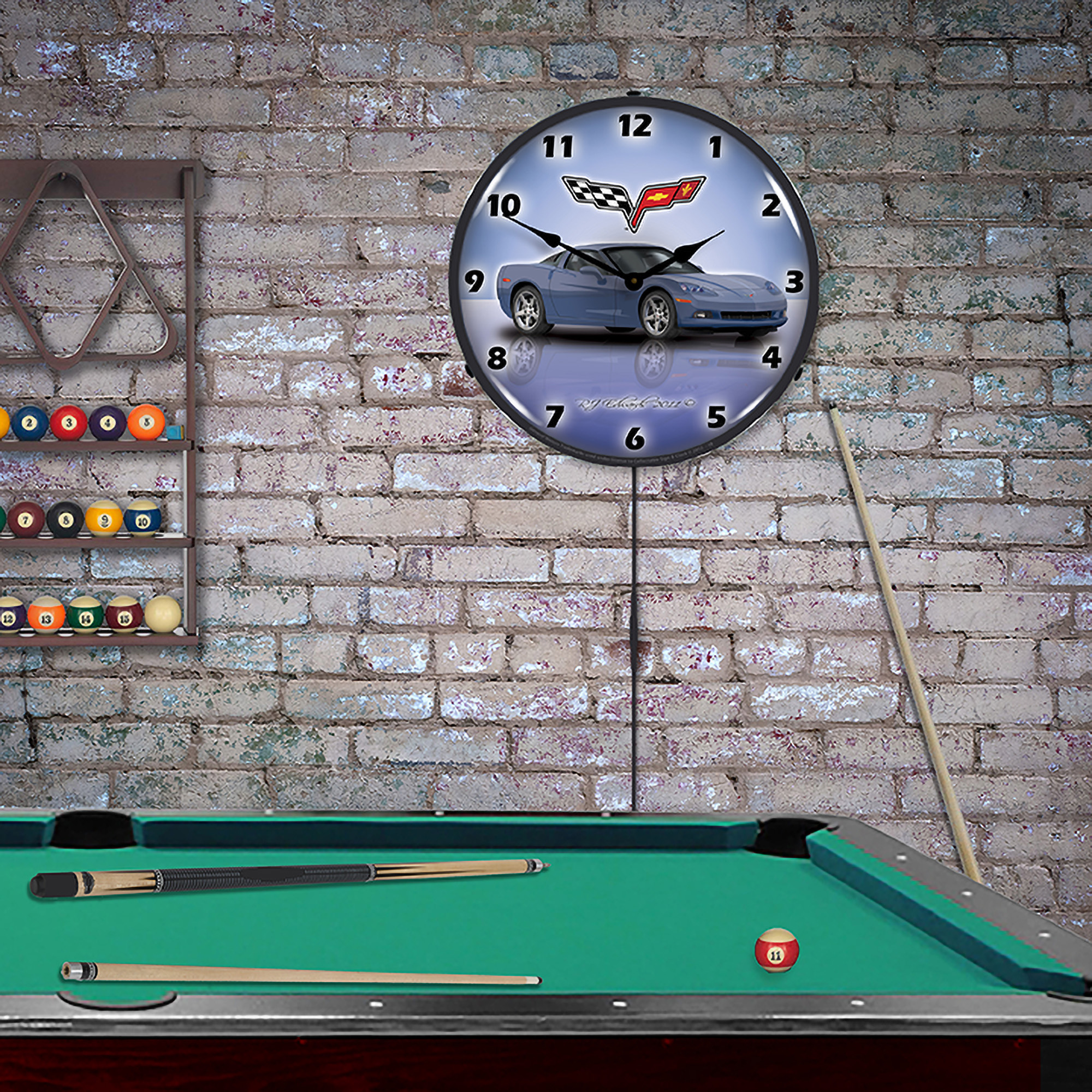 C6 Corvette Supersonic Blue LED Wall Clock Illuminated not Neon
