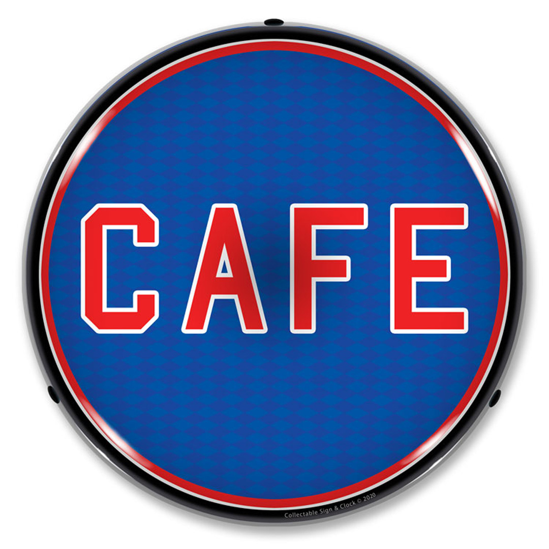 I’ll start from the top. The sign measures 14 inches across. The outer lens is made from high quality optical Lexan held in place with 3 removable rivets. It’s scratch resistant and won’t yellow over time. The advertisement face is cut out by a CNC router and the image is placed with a UV dried computer-controlled printing process that will last for many years. The back of the sign is made from black ABS plastic that houses an LED light source with an on/off switch in the cord. This sign is awesome when lit! This is a perfect addition to any business and would look great in any store front.