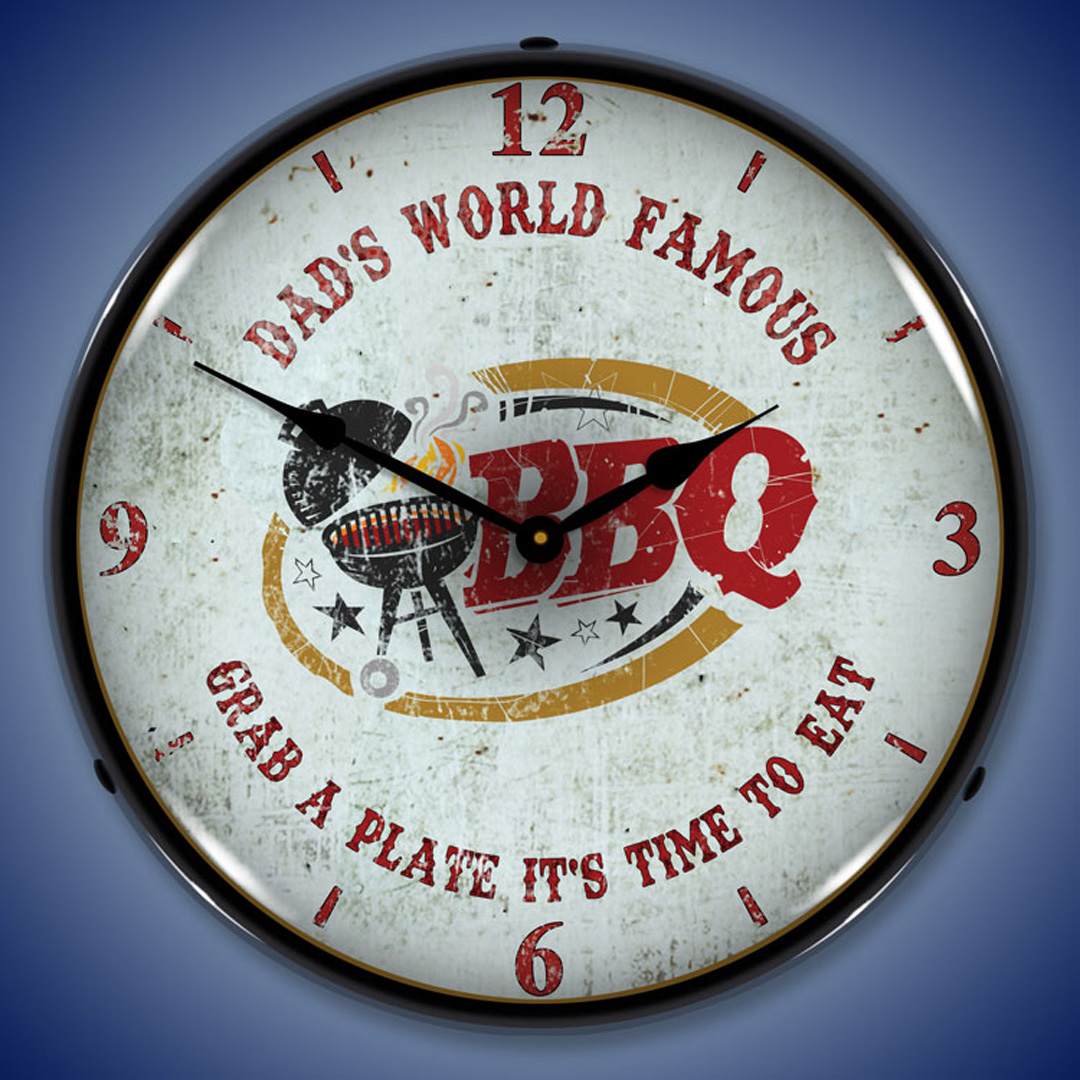 Dad’s World Famous BBQ LED Wall Clock Illuminated not Neon