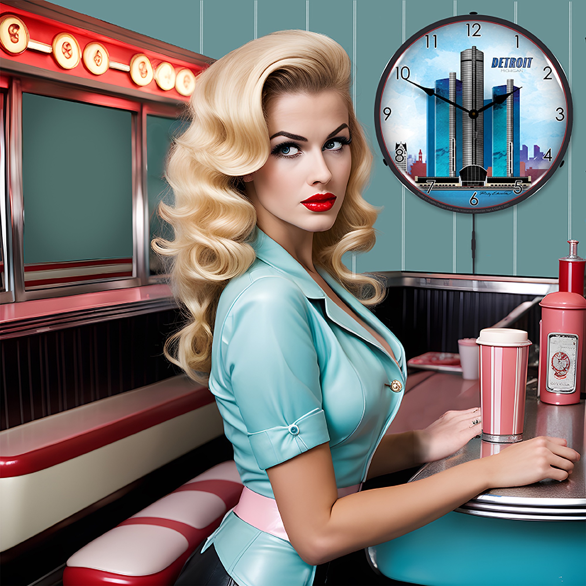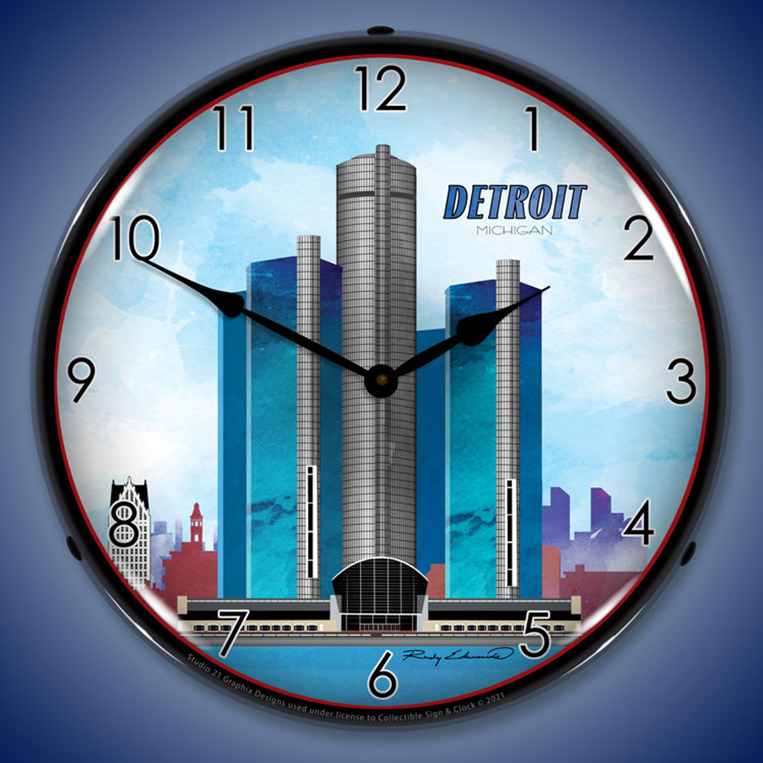 Detroit Skyline LED Wall Clock Illuminated not Neon