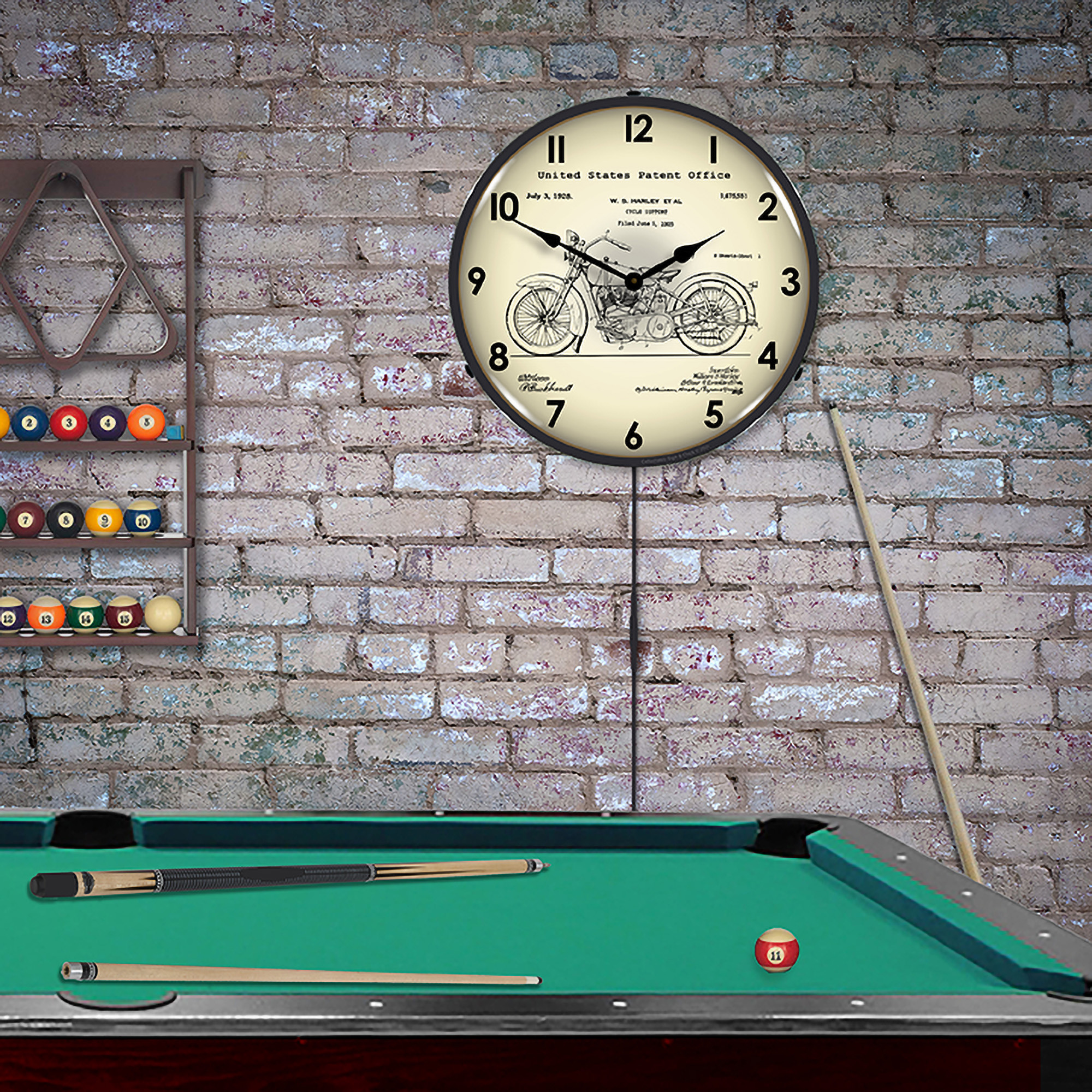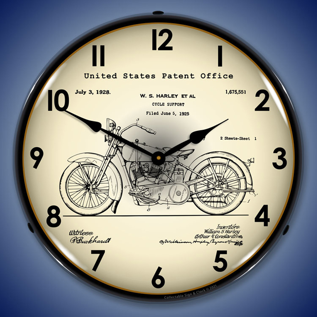 Harley 1928 Patent LED Wall Clock Illuminated not Neon