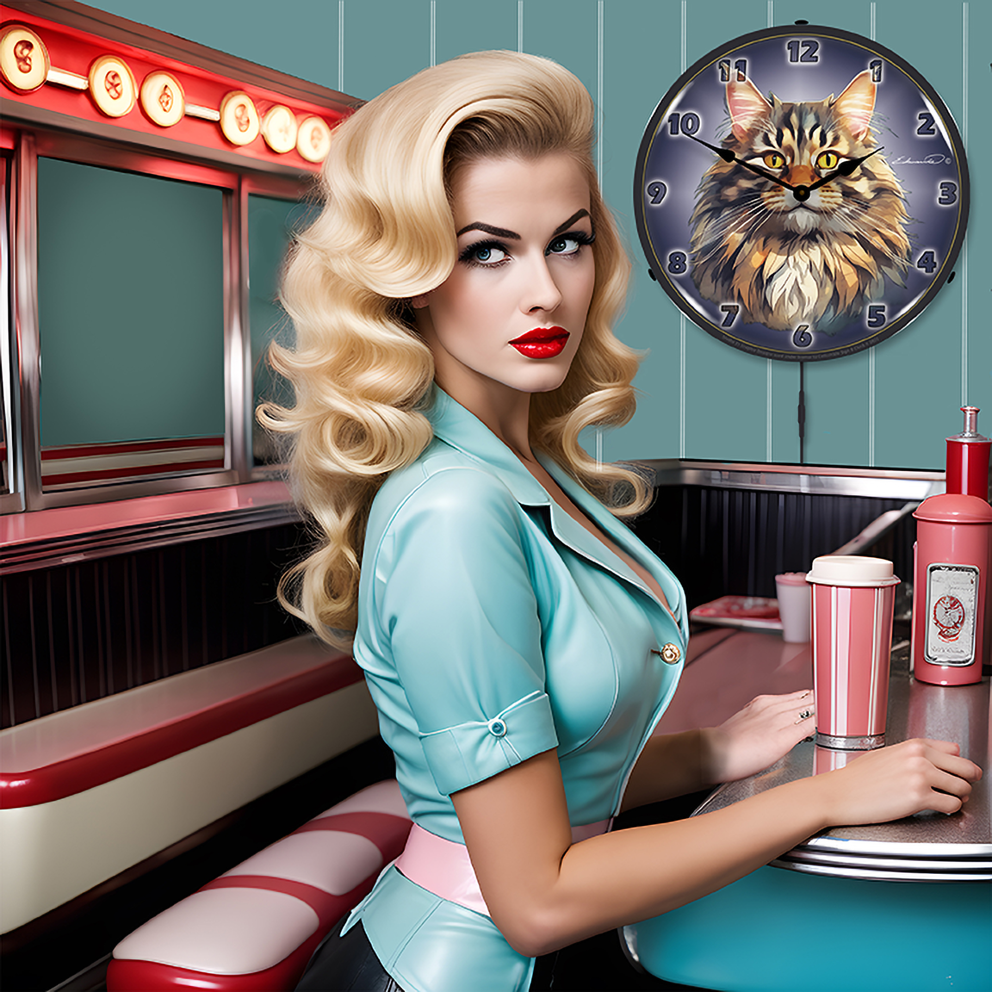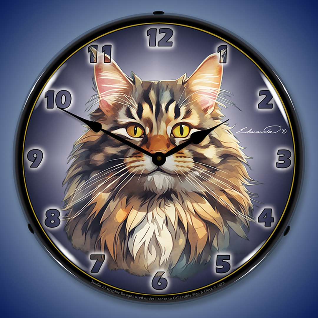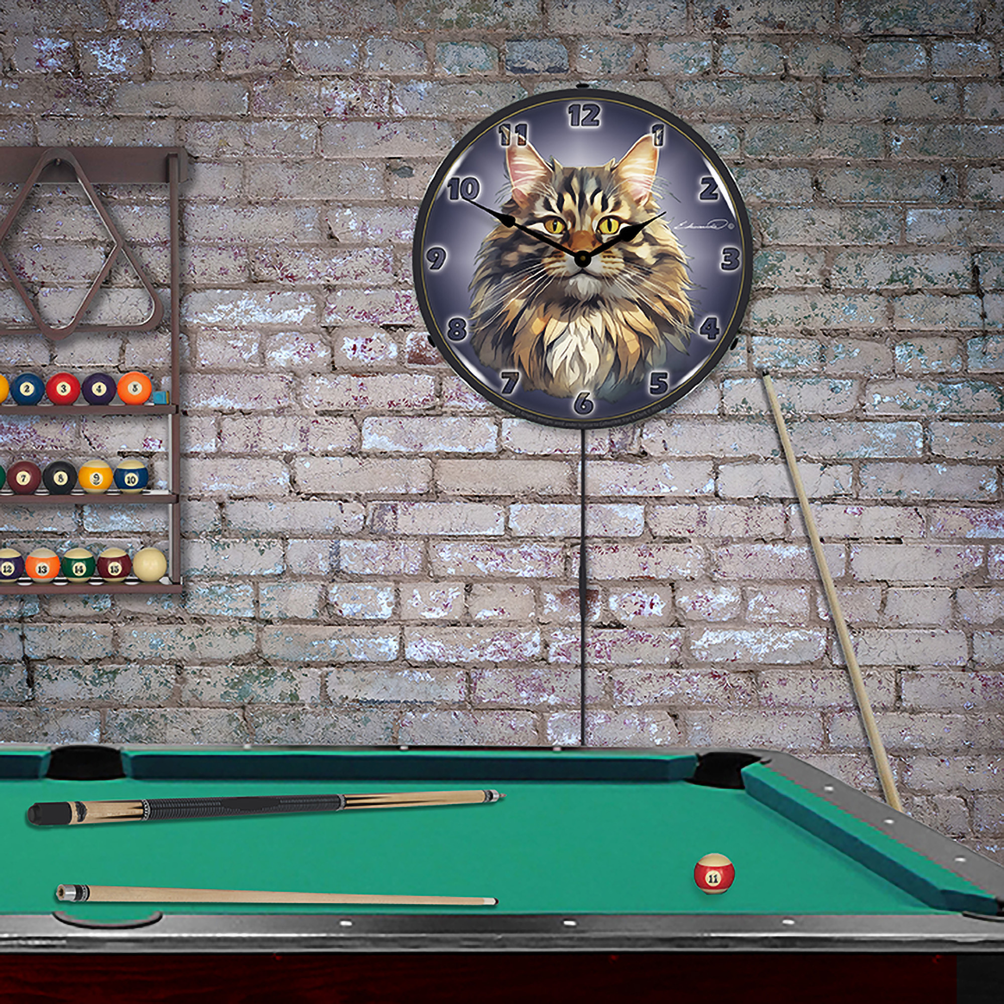 Main Coon Cat LED Wall Clock Illuminated not Neon