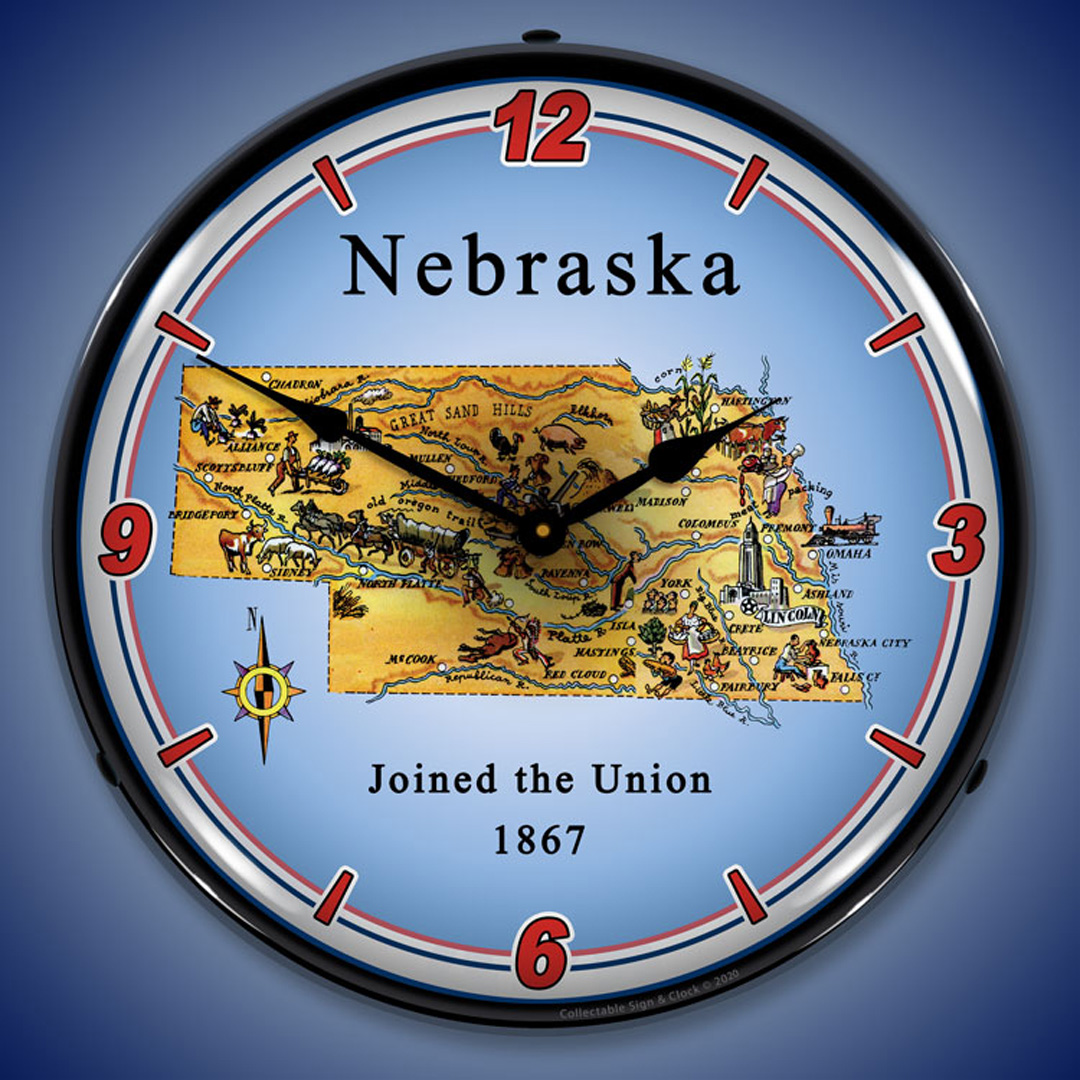State of Nebraska LED Wall Clock Illuminated not Neon