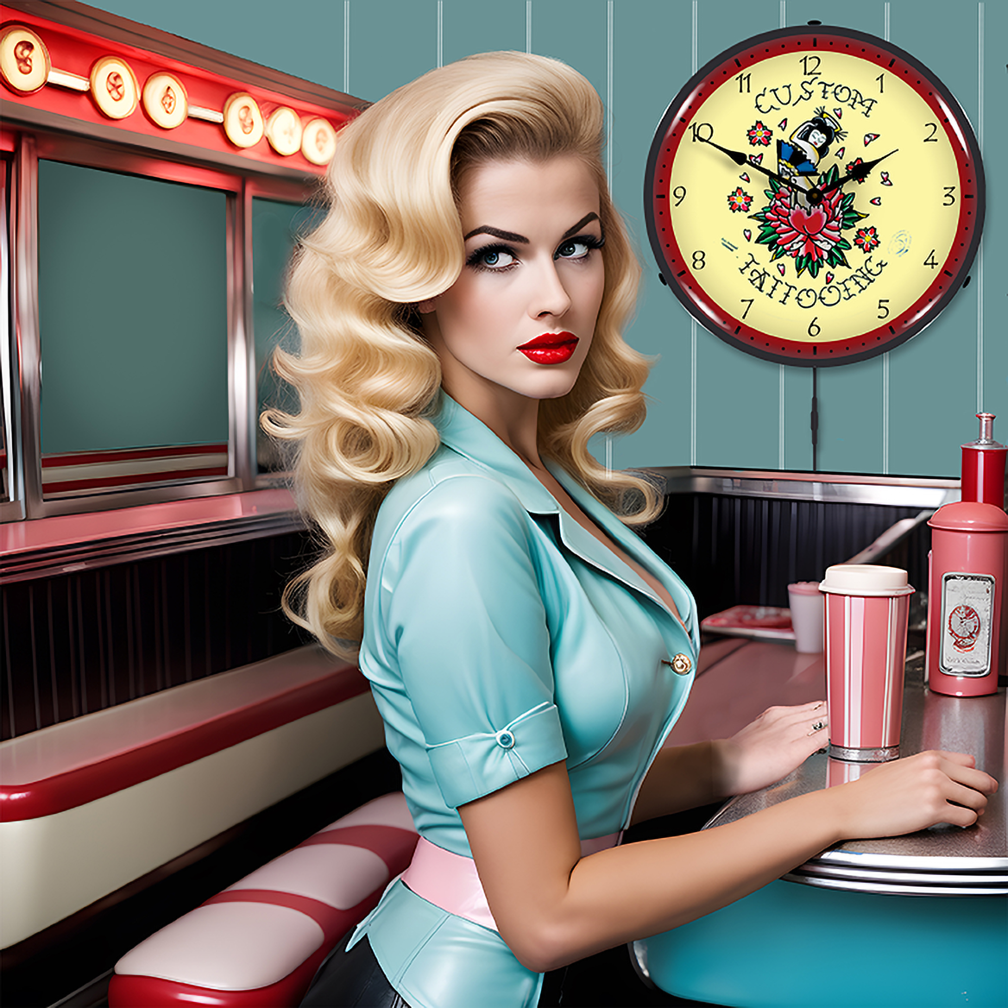 Tattoo Rose LED Wall Clock Illuminated not Neon