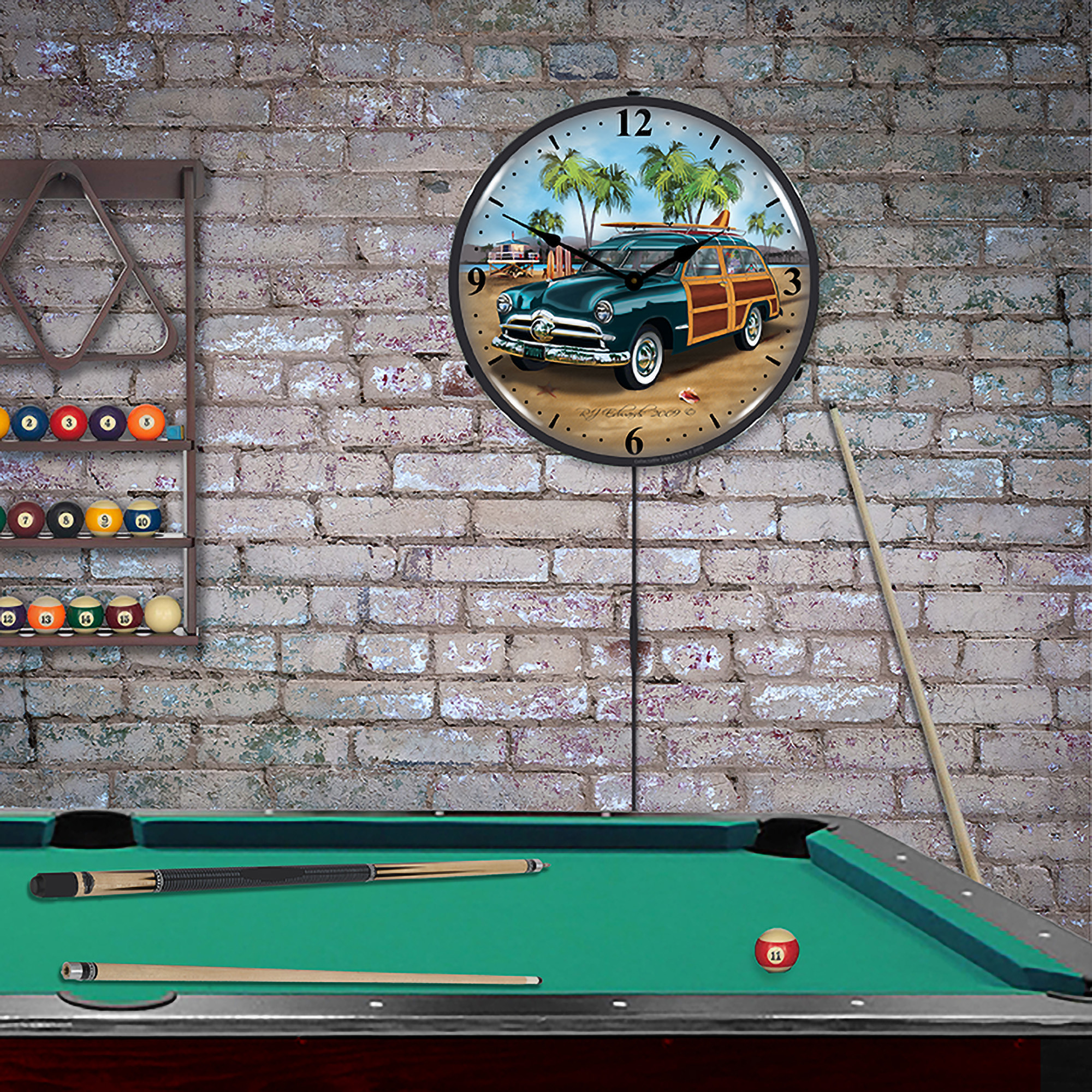Woodys Surfer Wagon LED Lighted Premium Wall Clock